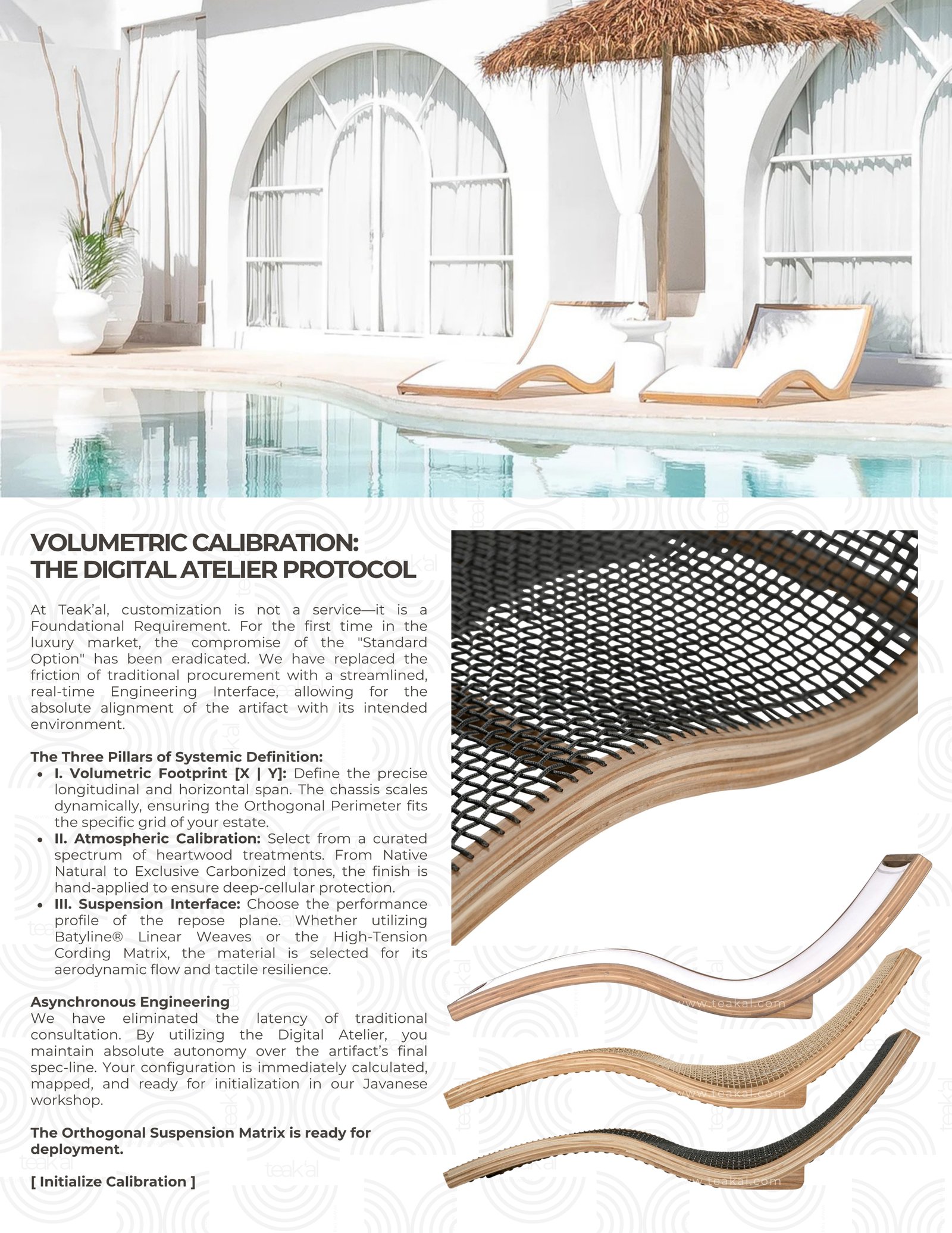Engineered as a definitive study in angular ergonomic geometry and aerodynamic material tension, the Orthogonal Suspension Matrix replaces standard exterior seating with a rigid, highly disciplined architectural node. Executed in Native Grade-A Javanese Heartwood and industrial-grade synthetic polymers, this volume is optimized for absolute performance in high-exposure aquatic zones.