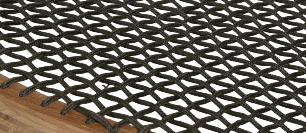 A hand-articulated radial tension weave. Utilizes high-performance solution-dyed cordage for a softer, organic interface with increased structural mass and refined architectural repose.